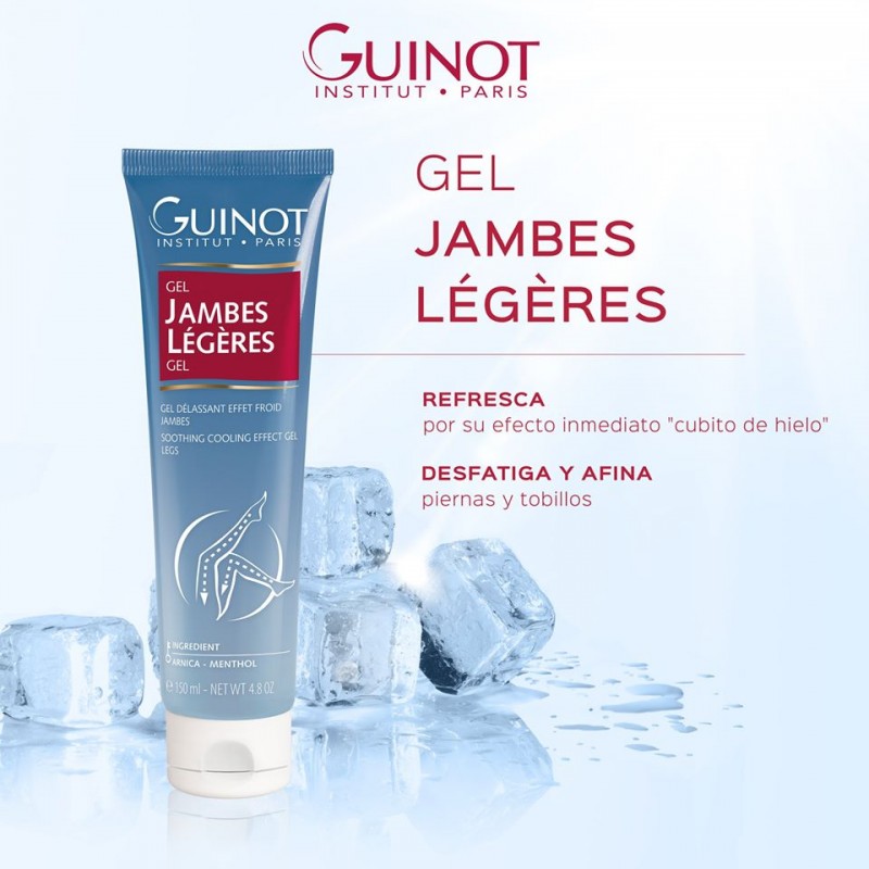 Nuestro Gel Jambes Légères está pensado para todas aquellas de vosotras con problemas circulatorios en las piernas o con tendencia a la hinchazón : Guinot os propone este magnífico producto con efecto frío, refrescante y confortable