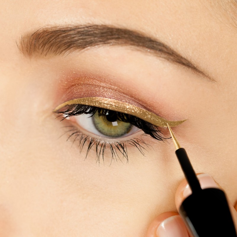 Agitar bien antes de usar. Humedece el pincel de Calligraphy Dip Eyeliner y traza una línea sobre las pestañas.